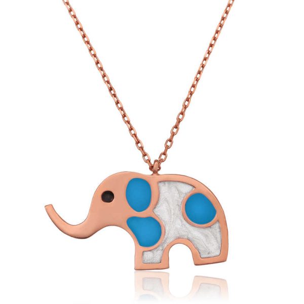 Fil; bilgelik, yetenek, iyi şans ve bereketin sembolüdür. Bu şık kolye; doğum günü hediyesi, sevgililer günü hediyesi veya annelere hediye olarak özel günlerde tercih edilebilecek mükemmel bir seçenektir. Bu anlamlı kolye 925 ayar gümüşten imal edilmiştir. Gümüş üzerine rose kaplama yapılmıştır. Rose kaplama yapılan gümüş kolyeler parlaklığını uzun süre muhafaza eder, gümüşe pembe rengini verir ve oksitlenmeyi geciktirir. Zincir boyu ortalama 45 cm’dir. Tüm gümüş kolye modellerinde olduğu gibi bu gümüş fil bayan kolye modeli de el emeği ile üretilmiştir. Gümüş ve değerli taşlar nedeniyle belirtilen ortalama ürün ağırlığında ± %10 sapma olabilmektedir.