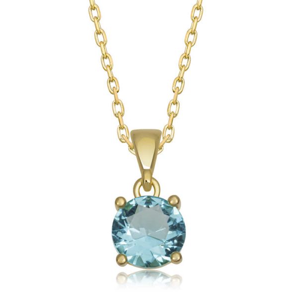 Gümüş Gold Turkuaz Kristal Yuvarlak Taşlı Kadın Kolye