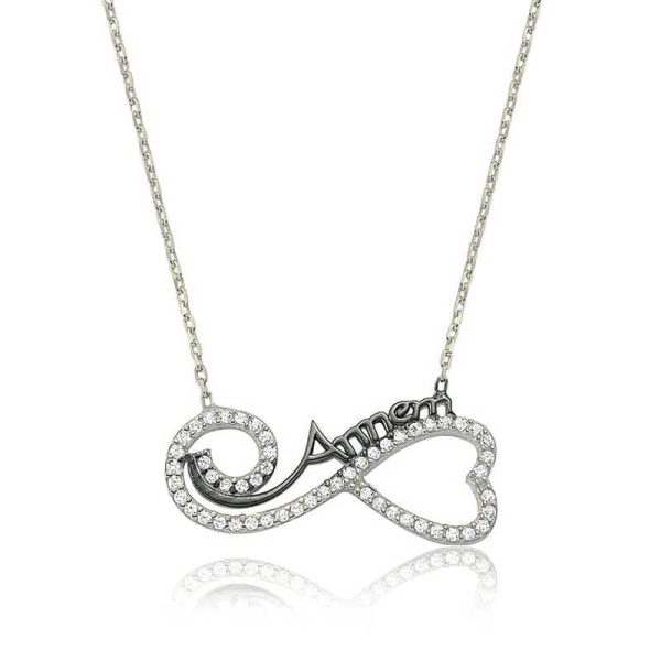 925 Ayar Gümüş Kalpli Sonsuzluk Annem Gümüş Kolye T6382 (538538)
