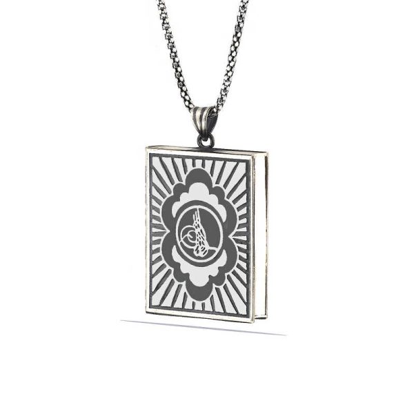 925 Ayar Gümüş Kare İçi Açılabilen Tuğra Muskalık Gümüş Kolye T6005 (538538)