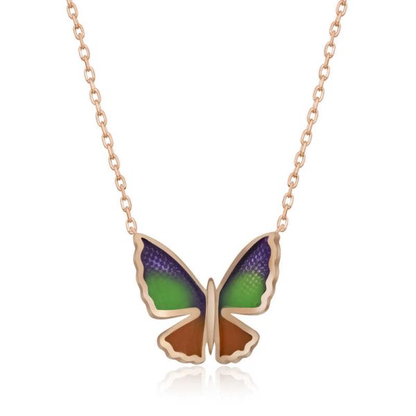 Özgürlüğü masumiyeti ve saflığı simgeleyen kelebekler, tertemiz sevginin ve aşkın ifadesidir. Bahar kelebekleri kolye anlam itibari ile aşkın küçük bir kıvılcım ile başladığı daha sonra büyük bir sabır ile büyüdüğü ve en sonunda ilan-ı aşkı ifade eder. Sizin olduğu kadar sevdiklerinizin de keyifle takacağı minimal kelebek bayan kolye en güzel hediyelerden biri olacaktır. Kolye 925 ayar gümüşten imal edilmiştir. Gümüş üzerine rose kaplama yapılmıştır. Rose kaplama yapılan gümüş bayan kolyeler parlaklığını uzun süre muhafaza eder, ve oksitlenmeyi geciktirir. Kolye üzerinde bulunan renkler mine işlemesidir. Gümüş olan zincir boyu ortalama 45 cm’dir. Tüm gümüş bayan kolyelerde olduğu gibi gümüş minimal kelebek bayan kolye de el emeği ile üretilmiştir. Gümüş ve değerli taşlar nedeniyle belirtilen ürün ağırlığında ± %10 sapma olabilmektedir.