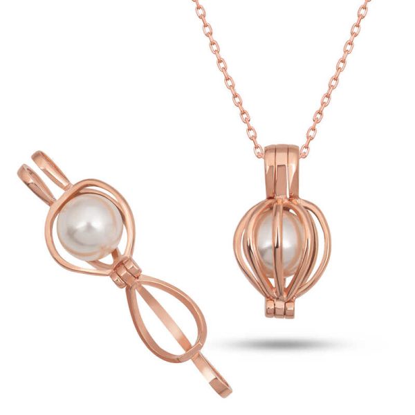 925 Ayar Gümüş Rose Beyaz İncili Kadın Kolye T7464 (538538)