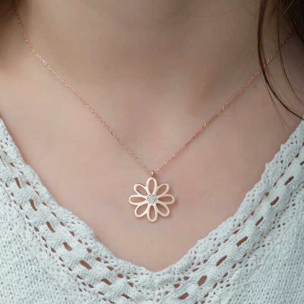 Sevdiklerinize duygularınızı ifade etmenin yolu neden çiçek desenli zarif bir kolye olmasın? Özel zamanlarda O’na gönderebileceğiniz, hediye seçenekleri arasında yer alan bu şık kolye sevdiklerinizi sevindirmenin en güzel yolları arasında yer almaktadır. En kaliteli, en ışıltılı taşlarla hazırlanmış gümüş çiçek bayan kolye; sevgisini bir kez daha anlatmak isteyenleri, sen bir çiçeksin demek isteyenleri bekliyor. Bu özel tasarım gümüş çiçek bayan kolye 925 ayar gümüşten imal edilmiştir. Gümüş üzerine rose altın kaplama yapılmıştır. Rose altın kaplama yapılan gümüş bayan kolye modelleri parlaklığını uzun süre muhafaza eder ve oksitlenmesi gecikir. Gümüş olan zincir boyu ortalama 45 cm’dir. Tüm bayan gümüş kolye modellerinde olduğu gibi gümüş rose çiçek bayan kolye de el emeği ile üretilmiştir. Gümüş ve değerli taşlar nedeniyle belirtilen ürün ağırlığında ± %10 sapma olabilmektedir.