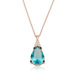 925 Ayar Gümüş Rose Opal Mavi Taşlı Ay Güneş Kadın Kolye T7617 (538538)