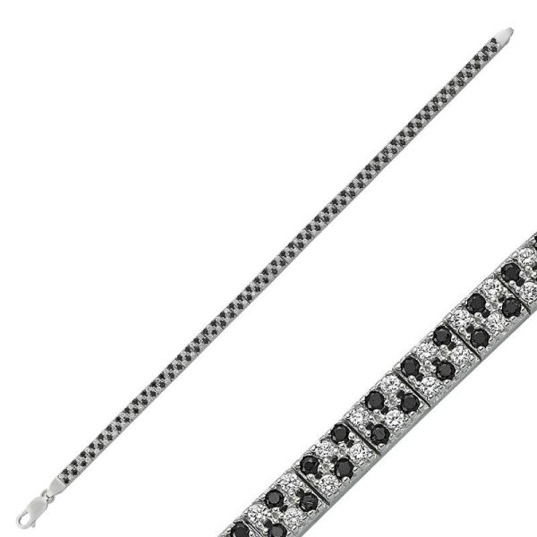 925 Ayar Gümüş Siyah Beyaz Taşlı Su Yolu Bileklik BR0460401 (538538)