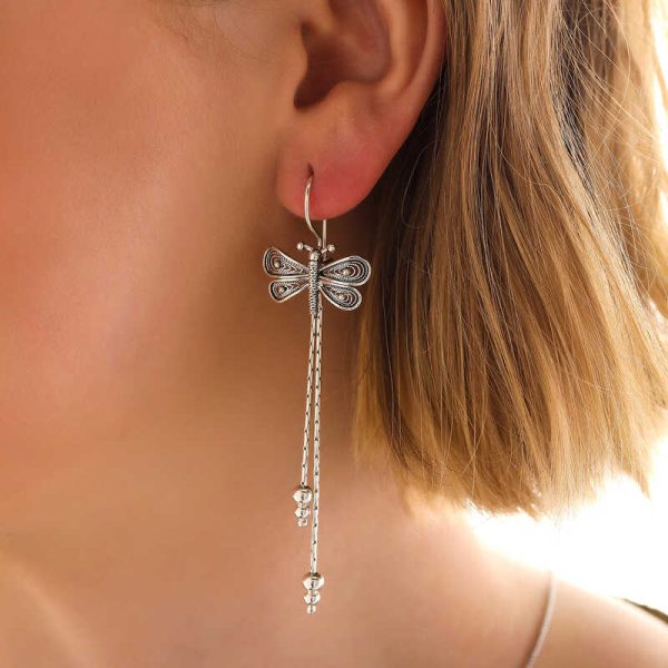 925 Ayar Gümüş Telkari Sallantılı Yusufçuk Kadın Küpe T8050 (538538)
