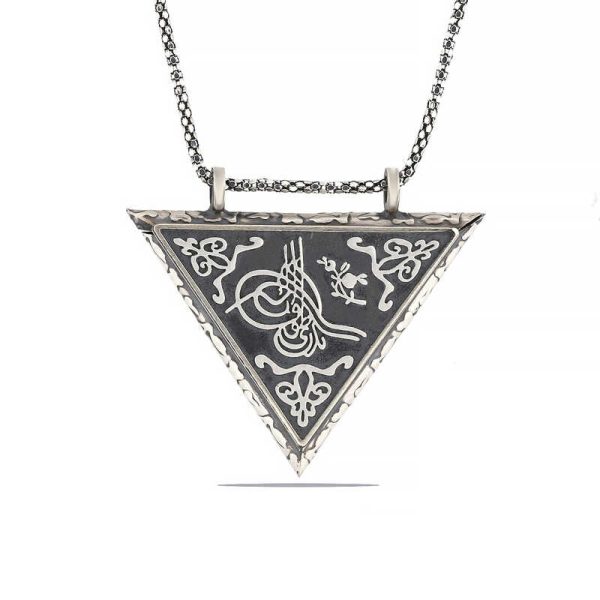 925 Ayar Gümüş Üçgen İçi Açılabilen Tuğra Muskalık Gümüş Kolye T6064 (538538)
