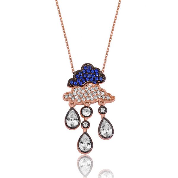 Kolye; doğum günü hediyesi, sevgililer günü hediyesi veya annelere hediye olarak özel günlerde tercih edilebilecek mükemmel bir seçenektir. Bu anlamlı ve şık kolye; 925 ayar gümüşten imal edilmiştir. Bu gümüş kolye üzerine rose kaplama yapılmıştır. Rose kaplama yapılan tüm kolyeler parlaklığını uzun süre muhafaza eder, gümüşü pembe renge dönüştürür ve oksitlenmeyi geciktirir. Zincir boyu ortalama 45 cm’dir. Yağmur bulutu kolye üzerinde bulunan taşlar zirkondur. Tüm gümüş kolyelerde olduğu gibi bu gümüş yağmur bulutu kolye de el emeği ile üretilmiştir. Gümüş ve değerli taşlar nedeniyle ürün ağırlığında ± %10 sapma olabilmektedir.