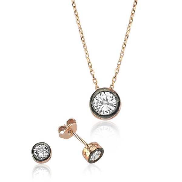 925 Ayar Gümüş Yuvarlak Tek Taş Set ST2610051 (538538)