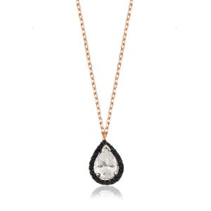 925 Ayar Gümüş Beyaz Taşlı Damla Kadın Gümüş Kolye T7122 (538538)