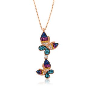 925 Ayar Gümüş Rose Çift Kelebek Kadın Gümüş Kolye T4143 (538538)