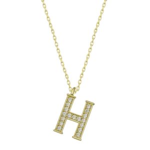 925 Ayar Gümüş Gold H Harfi Kadın Gümüş Kolye T6614 (538538)