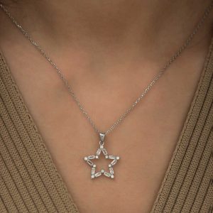 925 Ayar Gümüş Baget Taşlı Yıldız Kolye T5153 (538538)