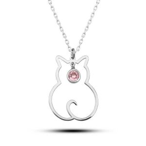 925 Ayar Gümüş Şubat Ayı Doğum Taşı Kedi Kadın Kolye T8400 (538538)