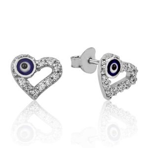 925 Ayar Gümüş Kalpli Nazar Çivili Küpe EA1160086 (538538)