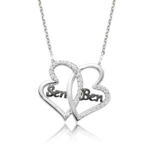 925 Ayar Gümüş Kalpli Sen Ben Kadın Gümüş Kolye PT2610304 (538538)
