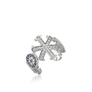 925 Ayar Gümüş Nazarlı Kar Tanesi Ayarlamalı Yüzük LR2230026 (538538)