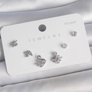 Pirinç Gümüş Renk Zirkon Taşlı Kuğu Model 925 Ayar Gümüş Çivi Kadın Küpe Seti - BKP10481 (538538)