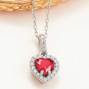 925 Ayar Gümüş Kırmızı Taşlı Kalpli Kadın Kolye T8053 (538538)