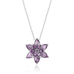 925 Ayar Gümüş Mor Lotus Çiçeği Kadın Gümüş Kolye T7316 (538538)