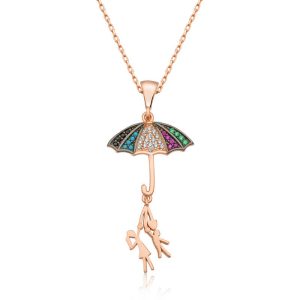 925 Ayar Gümüş Şemsiye Tutan Aşıklar Kadın Gümüş Kolye T3890 (538538)