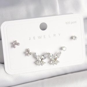 925 Ayar Gümüş Çivi Pirinç Zirkon Taşlı Kelebek Model Kadın Küpe Seti - BKP10402 (538538)
