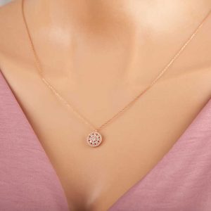 925 Ayar Gümüş Rose Minimal Yuvarlak Anturaj Kadın Kolye T8571 (538538)