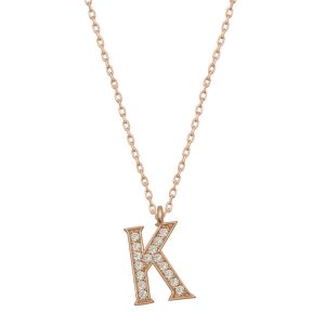 925 Ayar Gümüş Rose K Harfi Kadın Gümüş Kolye T6735 (538538)