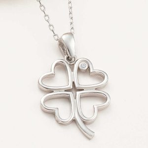925 Ayar Gümüş Kalpli Dört Yapraklı Yonca Kadın Kolye T7965 (538538)