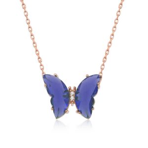 925 Ayar Gümüş Mavi Cam Kelebek Kadın Gümüş Kolye T5204 (538538)