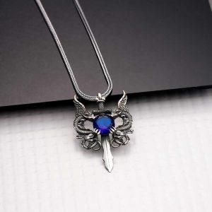 925 Ayar Gümüş Mavi Taşlı Ejderha Erkek Kılıç Kolye T7930 (538538)