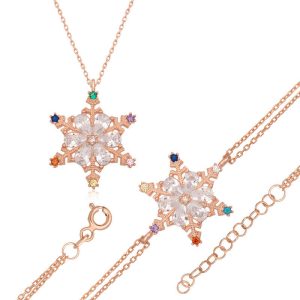 925 Ayar Gümüş Renkli Taşlı Kar Tanesi Kadın Set T7102 (538538)