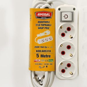 3 lü Topraklı Anahtarlı 5 Metre Kablolu Grup Priz (538538)