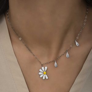 925 Ayar Gümüş Papatya Seviyor Sevmiyor Bayan Gümüş Kolye T5978 (538538)
