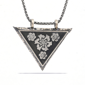 925 Ayar Gümüş Üçgen İçi Açılabilen Çiçek Muskalık Gümüş Kolye T6066 (538538)