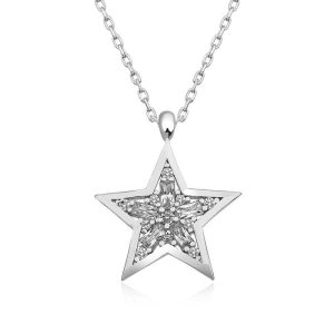 925 Ayar Gümüş Rose Fırfır Desenli Yıldız Kadın Kolye T8645 (538538)