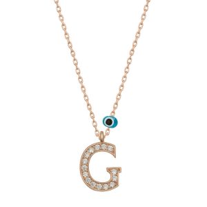 925 Ayar Gümüş Nazar Rose G Harfi Kadın Gümüş Kolye T6875 (538538)
